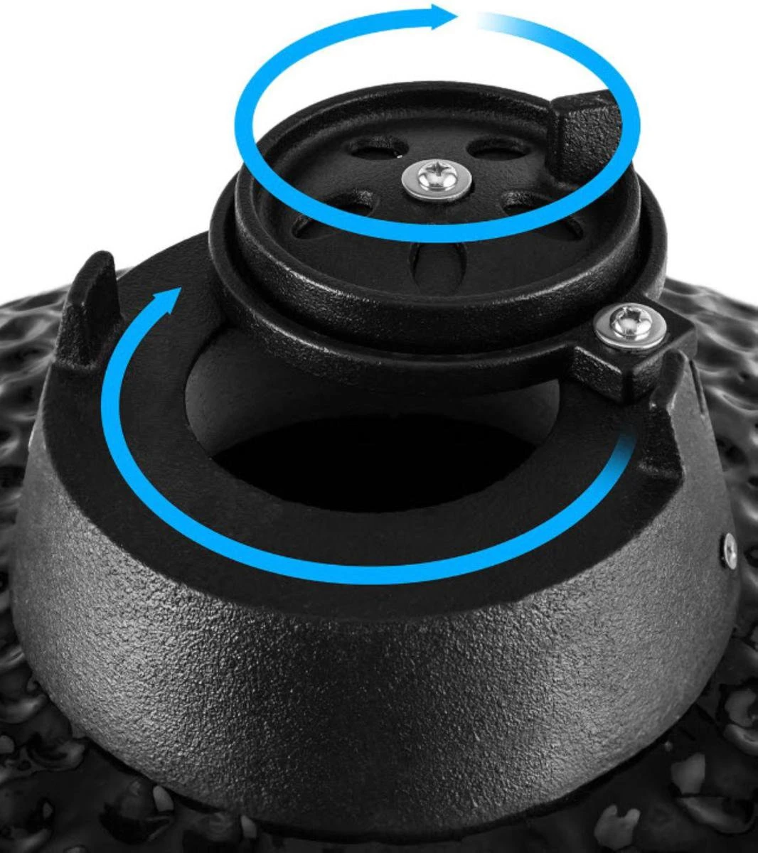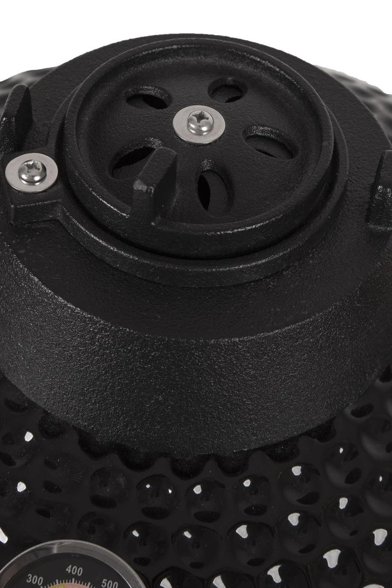 - Dankzij de keramische schaal en gecontroleerde luchtstroom wordt het vlees of ander gerecht sappiger en malser dan in welke andere stalen barbecue ook, waarmee uitdroging wordt voorkomen!